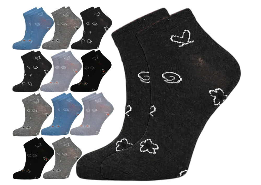 12 párů dámských kotníkových ponožek se vzorem