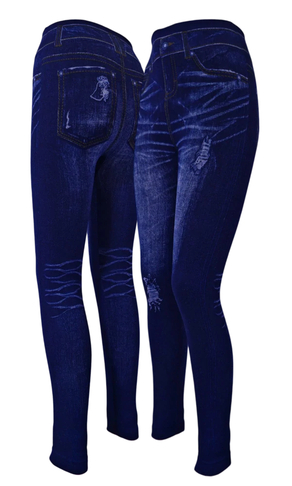 S vysokým pasem a širokou gumou v pase, tyto legíny skvěle drží a nikde neškrtí. Džínový design a potisk dodávají těmto legínám jedinečný a moderní vzhled, který se hodí ke každé příležitosti.
